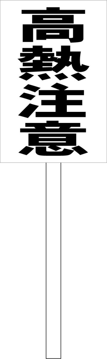 シンプル立札看板 「高熱注意(黒)」工場・現場 屋外可(面板 約H45.5cmxW30cm)全長1m