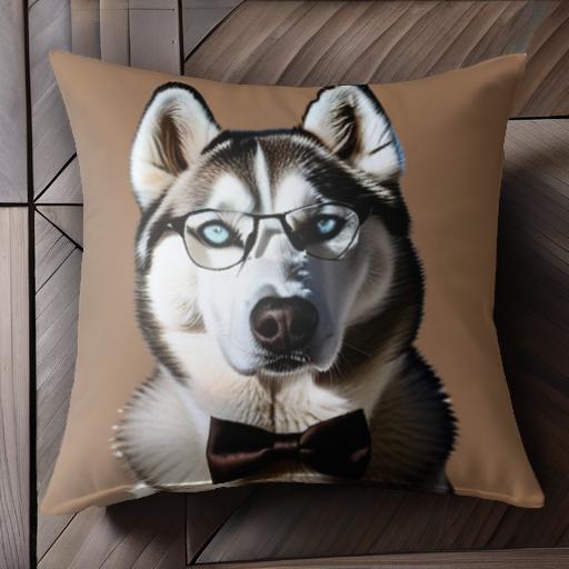 眼鏡 シベリアンハスキー 蝶ネクタイ クッションカバー 45×45cm アニマル柄 おしゃれ 可愛い クッション本体付き 正方形 犬ファン