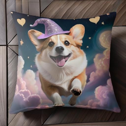 魔法の帽子 コーギー 星 雲 クッションカバー 45×45cm アニマル柄 おしゃれ 可愛い クッション本体付き 正方形 犬ファン