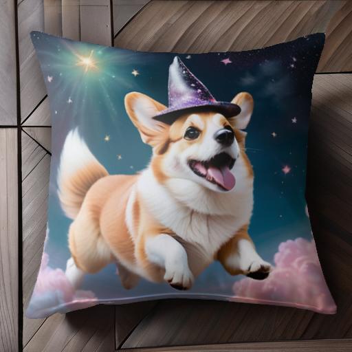 魔法の帽子 コーギー 星空 ピンクの雲 星 クッションカバー 45×45cm アニマル柄 おしゃれ 可愛い クッション本体付き 正方形 犬ファン