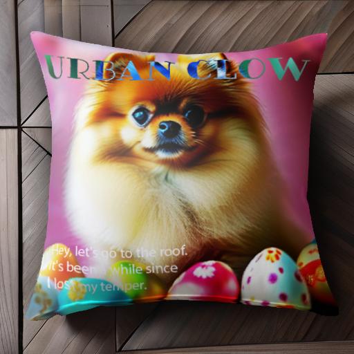 カラフルな卵 ポメラニアン ピンクの背景 クッションカバー 45×45cm アニマル柄 おしゃれ 可愛い クッション本体付き 正方形 犬ファン