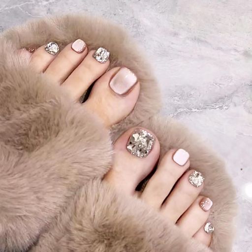 ☆ビジューフレンチフットネイル/16本セット☆パシフィックビジュー キラキラ シルバーラメ グリッター シャイニー ミックスカラー繰り返し使える 貼るだけ簡単 ネイリスト作成 サマー夏サンダル 足用ネイルチップつけ爪付け爪footnail 親指用2本+14本 ペディキュア