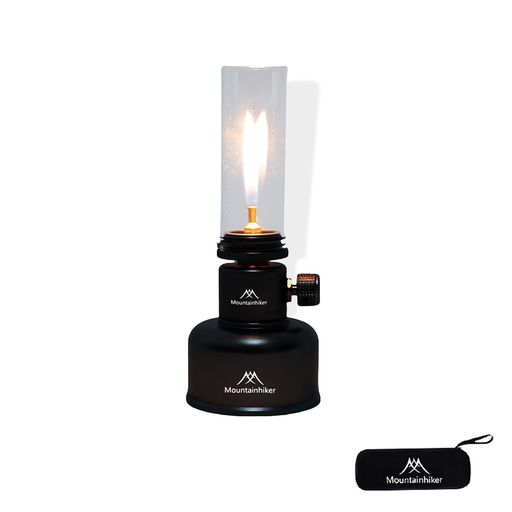 Mountainhikerキャンドルランタンガスランタンコンパクト耐熱ガラス真鍮製ノズルOD缶対応アルミ合金ガスタンク収納ケース付きアウトドア・キャンプ用(黒)