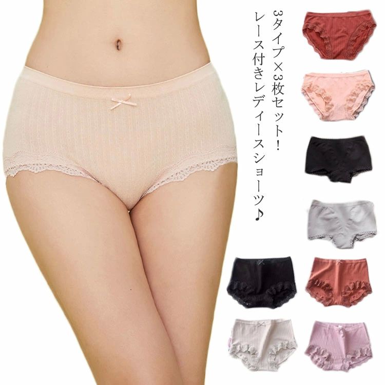 レディースショーツ レース付き 3枚セット インナー 下着 快適ショーツ 履きやすい キレイ目 伸縮 痛くない ハイウエスト 無地