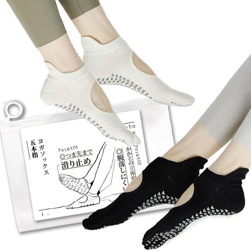 [MINASETO]ヨガソックスピラティス靴下【つま先まで滑り止め5本指7色展開】ピラティスソックスピラティス靴下ピラティスソックスヨガ靴下ヨガ靴下滑り止め靴下(FreeSizeSB1ブラック+ベージュ)