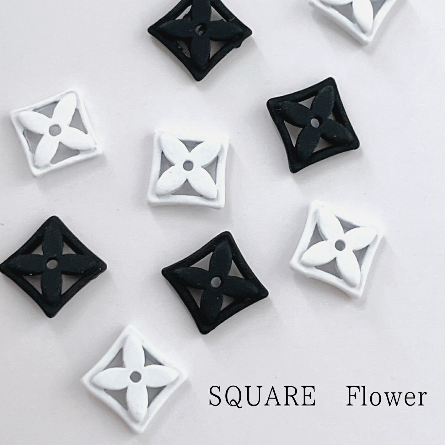ネイルパーツ 【4個入】スクエア フラワー モノトーン 白黒 くり抜きフラワー 四角 ワンホンネイル セルフネイル デコパーツ ネイルアート材料 ジュエリー ピアス ハンドメイドアクセサリー SABOE