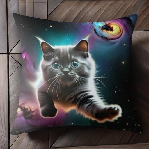宇宙 その他 銀河 星 猫 青い目 クッションカバー 45×45cm アニマル柄 おしゃれ 可愛い クッション本体付き 正方形