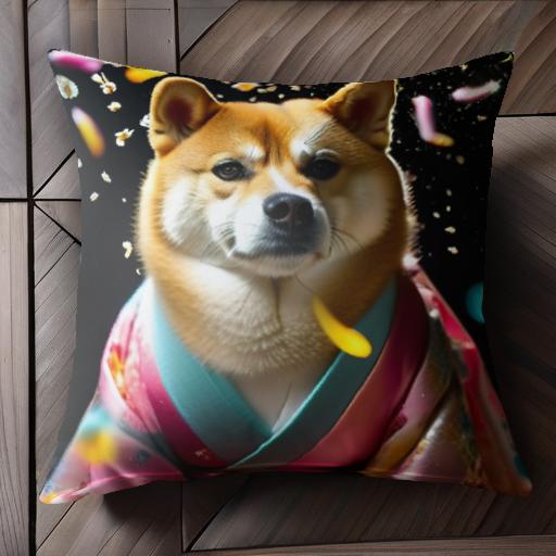 着物 柴犬 花びら クッションカバー 45×45cm アニマル柄 おしゃれ 可愛い クッション本体付き 正方形
