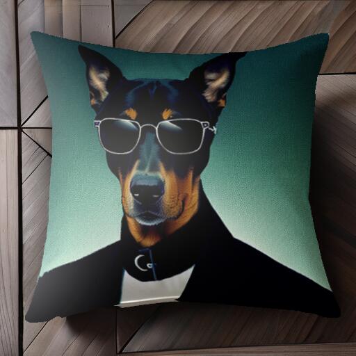 サングラス ドーベルマン スーツ クッションカバー 45×45cm アニマル柄 おしゃれ 可愛い クッション本体付き 正方形