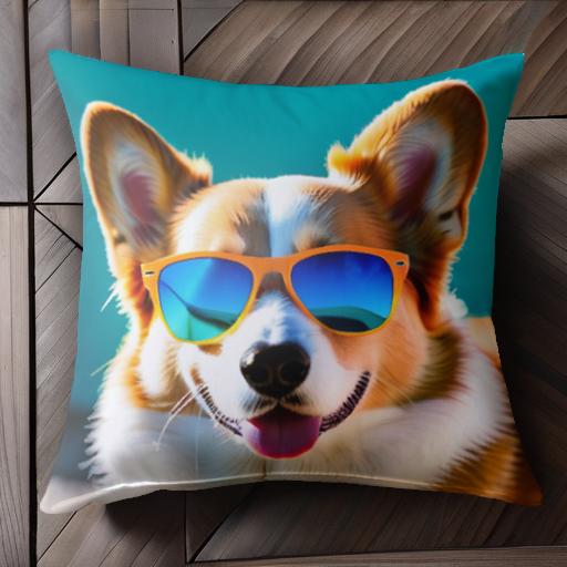 サングラス ウェルシュコーギーペンブローク 青い背景 笑顔 クッションカバー 45×45cm アニマル柄 おしゃれ 可愛い クッション本体付き 正方形