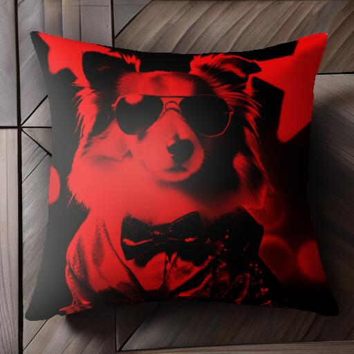 サングラス シェットランドシープドッグ 蝶ネクタイ ジャケット スター クッションカバー 45×45cm アニマル柄 おしゃれ 可愛い クッション本体付き 正方形 犬ファン