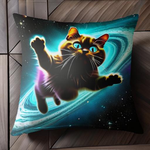宇宙 猫 スペーススーツ 銀河 惑星 クッションカバー 45×45cm アニマル柄 おしゃれ 可愛い クッション本体付き 正方形
