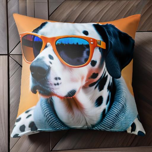サングラス ダルメシアン おしゃれ ドッグファッション オレンジ背景 クッションカバー 45×45cm アニマル柄 可愛い クッション本体付き 正方形