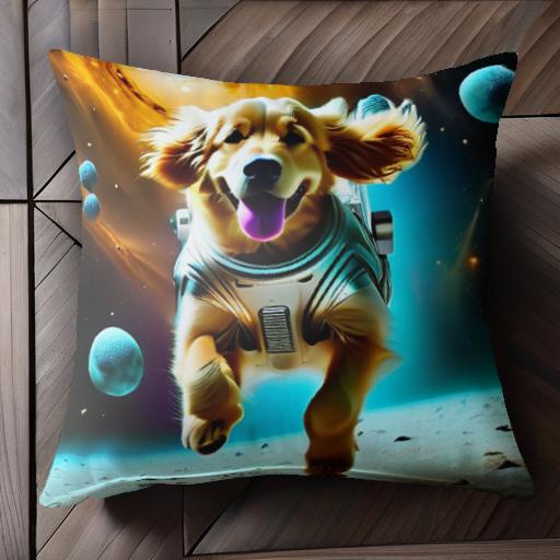 宇宙 ゴールデンレトリバー 惑星 宇宙服 銀河 クッションカバー 45×45cm アニマル柄 おしゃれ 可愛い クッション本体付き 正方形