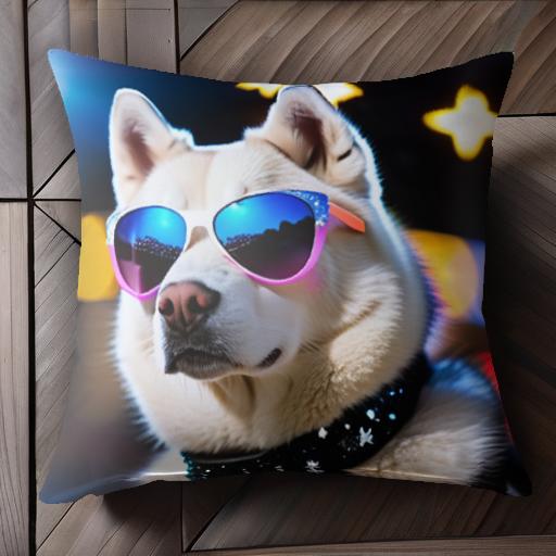 サングラス シベリアンハスキー ネオン 夜景 犬 クッションカバー 45×45cm アニマル柄 おしゃれ 可愛い クッション本体付き 正方形