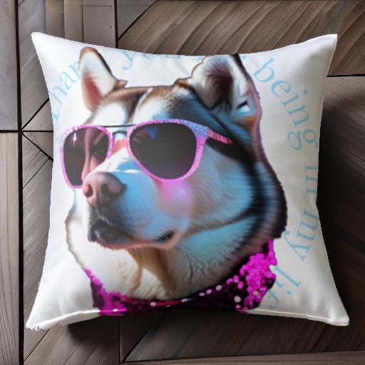 サングラス シベリアンハスキー キラキラ おしゃれ クッションカバー 45×45cm アニマル柄 可愛い クッション本体付き 正方形