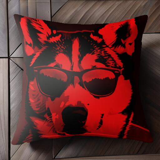 サングラス シベリアンハスキー クッションカバー 45×45cm アニマル柄 おしゃれ 可愛い クッション本体付き 正方形