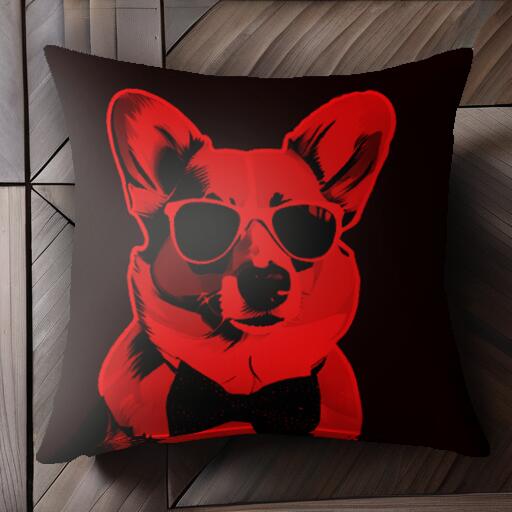 サングラス コーギー 蝶ネクタイ クッションカバー 45×45cm アニマル柄 おしゃれ 可愛い クッション本体付き 正方形