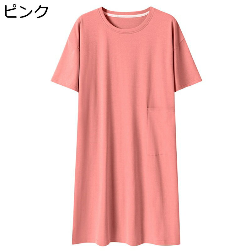 夏 ワンピース レディース 短袖 ナイトウェア 寝巻き 薄手 パジャマ カジュアル ゆったり 柔らかい コットン 吸汗 通気 優しい肌触り ロング丈 プルオーバー 室内服 昼寝着 お休み 外出 贈り物 ピンク