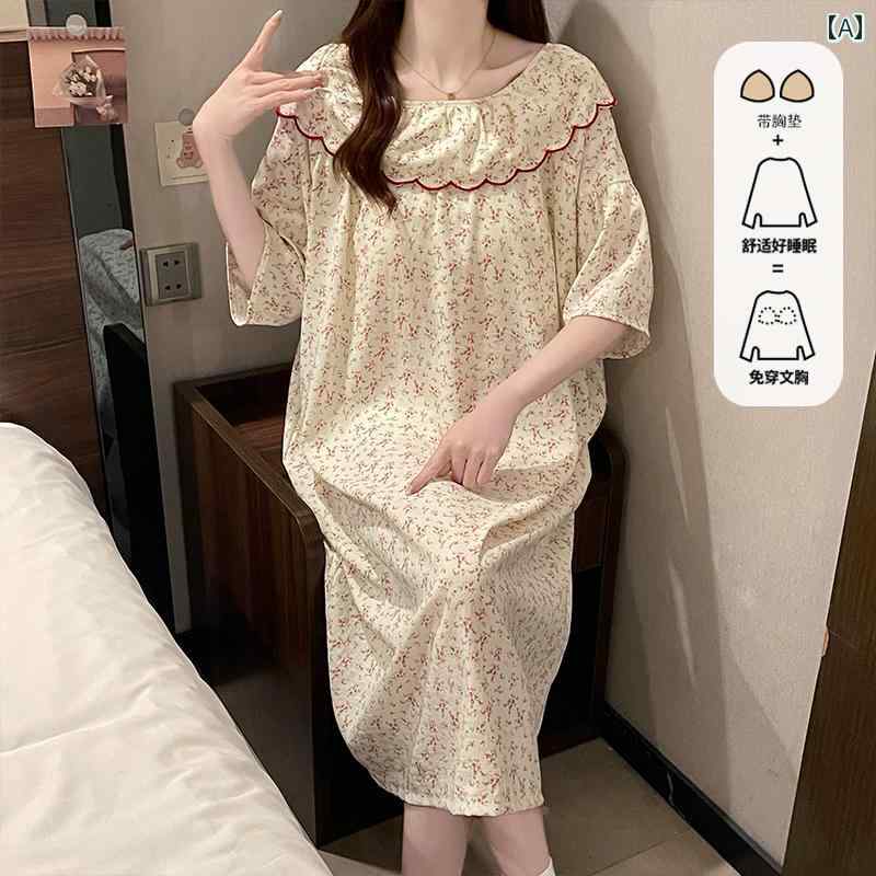部屋着 サマードレス 胸パッド マタニティードレス 半袖 七分袖 膝丈スカート パジャマ ネグリジェ フリル リボン 大きいサイズ コットン ゆったり 夏 妊婦