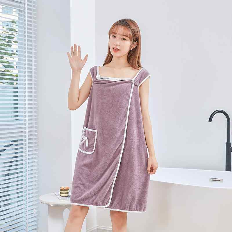 バスローブ レディース 厚手 コーラルフリース ふわふわ 吸水 速乾 ラップタオル 着れるバスタオル ストラップ付き ポケット付き 部屋着 ルームウェア お風呂上がり ゆったりサイズ