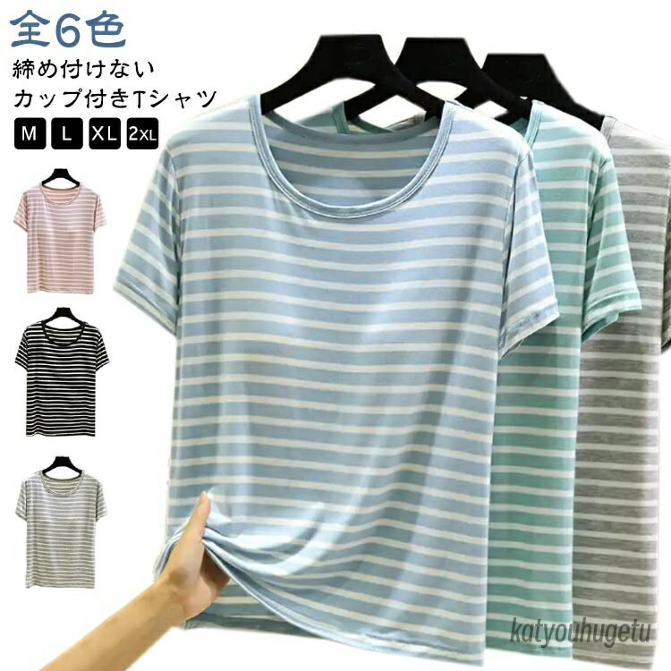 【送料無料】可愛い パジャマ 部屋着 ルームウェア ボーダー柄 大きいサイズ 涼しい トップス 薄手 夏 涼感 レディース Tシャツ カップ付き