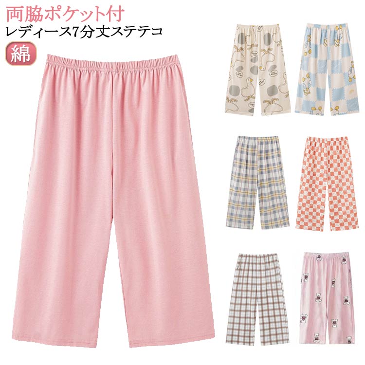ズボン 綿 ルームウェア パンツ レディース ポケット付 七分丈 ゆったり 春秋 七分丈 ひざ下 夏 イージーパンツ リラックスウェア イージーパンツ ステテコ パジャマ カジュアル 部屋着 かわいい 可愛い 無地 おしゃれ