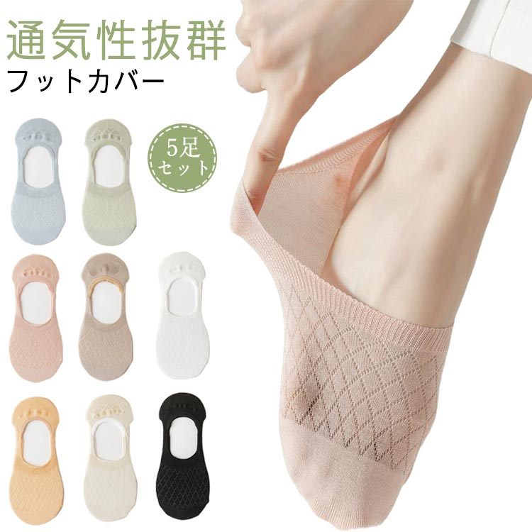 くつ下 フットカバー 深履き 靴下 5足セット 夏用 メッシュ 見えない 脱げない カバーソックス レディース 大人可愛い おしゃれ スニーカーソックス 通気性抜群 パンプス スリッポン 滑り止め くるぶし 送料無料