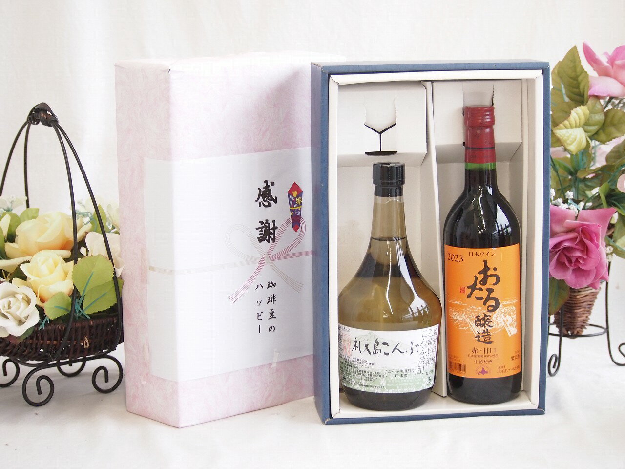 北海道特産感謝の贈り物ボックス2本セット(礼文島こんぶAlc20度(千葉県) おたる醸造 赤甘口(北海道)) 720ml×2本