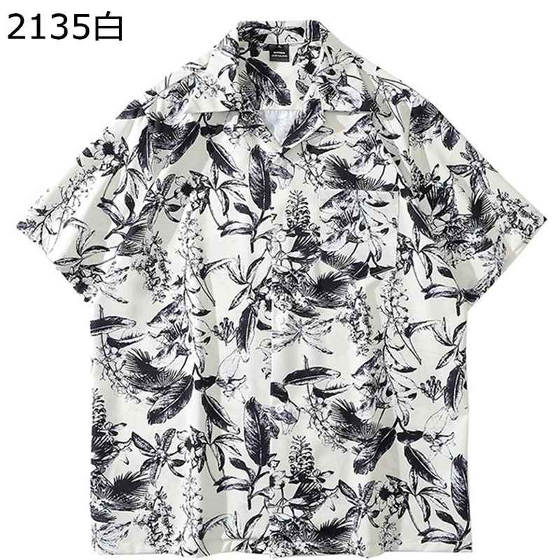 メンズ ビーチシャツ 開襟シャツ トレンド 開襟 総柄プリント付き 春 夏 ポケット付き 開襟アップ ゆったり サマー 紳士 個性的 クール 夏アウター 男性用 通学 通勤 バカンス