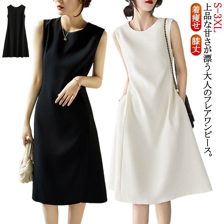 Aライン ワンピース ノースリーブ ひざ丈 ワンピース レディース 袖なし セレモニー フレアワンピース 背中ファスナー きれいめ オフィス パーティードレス フォーマル お洒落 着痩せ シンプル 薄手 旅行 通勤 送料無料