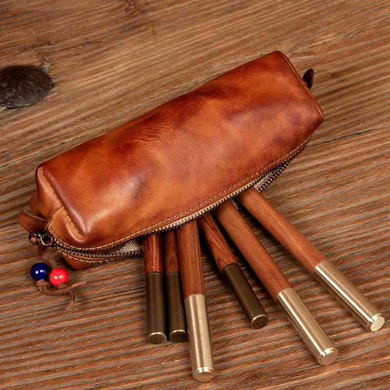 バッグ ペンケース 筆入れ 植物 タンニン なめし 牛革 ペン 手揉み 最上層 牛革 ユニセックス レトロ キー 収納