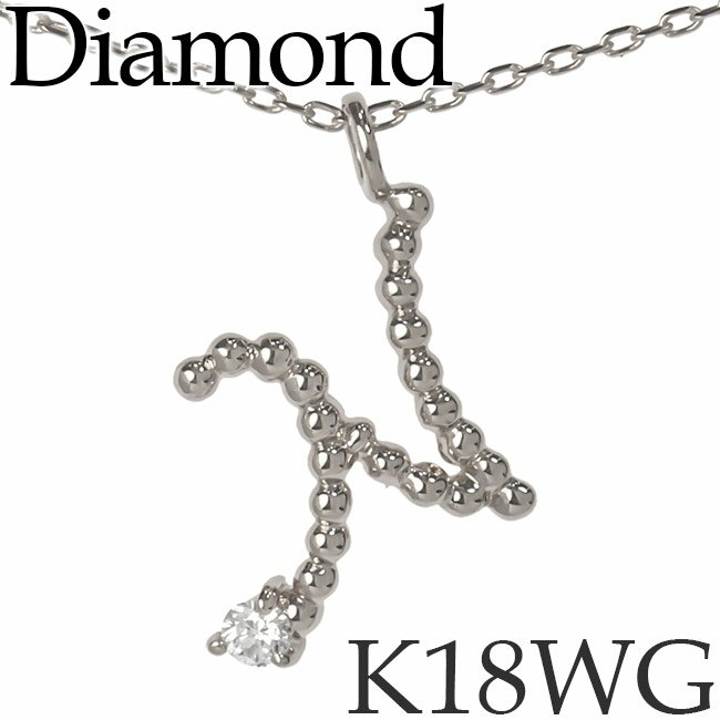 ダイヤモンド イニシャル ネックレス N K18ホワイトゴールド カットアズキチェーン 日本製 K18WG 18KWG 18金 [kh][2025-04A]