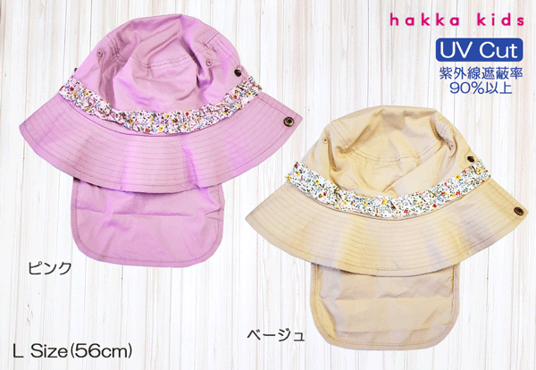 日よけ付きハット サンシェイド付き 日よけ付き 子供 子ども キッズ 無地 ベージュ ピンク Lサイズ 56cm おしゃれ 可愛い かわいい UV加工 UV対策 日焼け防止 熱中症対策 ゆうパケット全国送料無料!