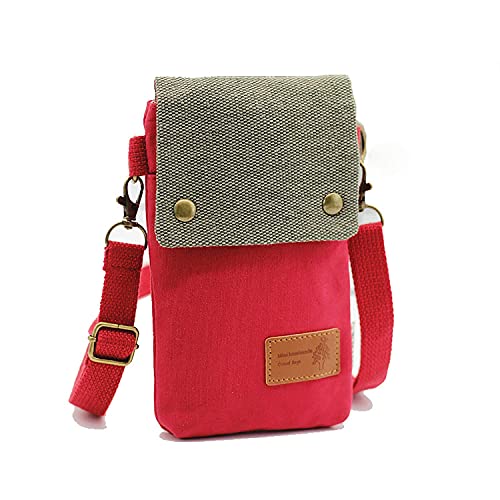 [TOEDNNQI] スマホポーチ スマホバッグ 携帯バックミニショルダーバッグ スマートフォンポーチ 斜め掛け ガジェットポーチ スマホ 小銭 鍵 小物入れ ミニバッグ お財布バッグ キャンバス 男女兼用 iPhone (red)