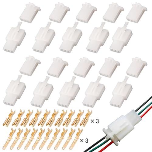 GLOWZEN 配線 接続コネクター カプラー 3極 電線コネクタ オス・メス各10個+2.8mm接触端子60個セット