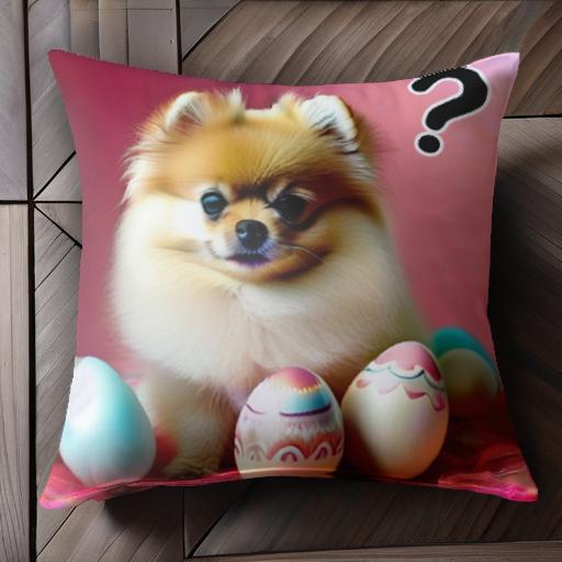 卵 ポメラニアン ピンクの背景 疑問符 クッションカバー 45×45cm アニマル柄 おしゃれ 可愛い クッション本体付き 正方形 犬ファン