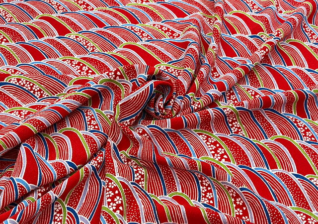 ちりめん 桜に波 赤 2mカットクロス1,320円 激安お買い得 布 生地 手芸 ハンドクラフト 服地 衣装 文化祭 体育祭 学園祭 アパレル