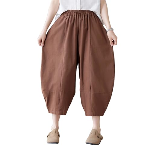 【送料無料】[Blostirno] サルエルパンツ レディース 夏 7分丈 リネンパンツ ガウチョ ゆったり ワイドパンツ 綿麻 着痩せ シルエット