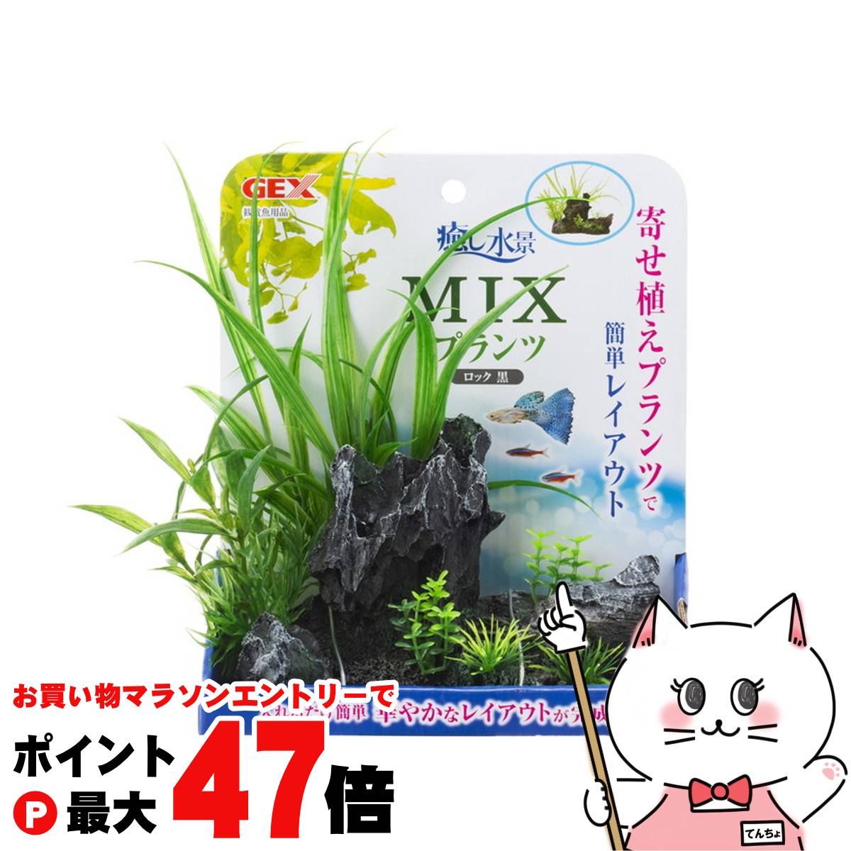 【お買い物マラソン最大47倍】ジェックス 癒し水景 MIXプランツ ロック 黒【happiest】【SBT】(6032942)
