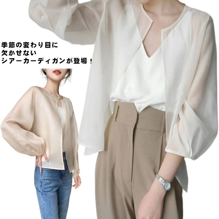 きれいめ 冷房対策 透け感 オーガンジー 長袖 レディース シアートップス 薄手 シフォン カーディガン 紫外線対策 UVカット シア