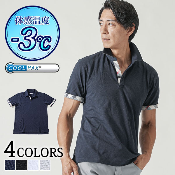 スキッパーポロシャツ メンズ ポロシャツ スキッパー 接触冷感 冷感 涼しい 夏 半袖 半袖ポロシャツ メンズポロシャツ メンズ半袖 ドライ クールマックス チェック 柄 40代 50代 ファッション メンズファッション イケオジ ちょいワル