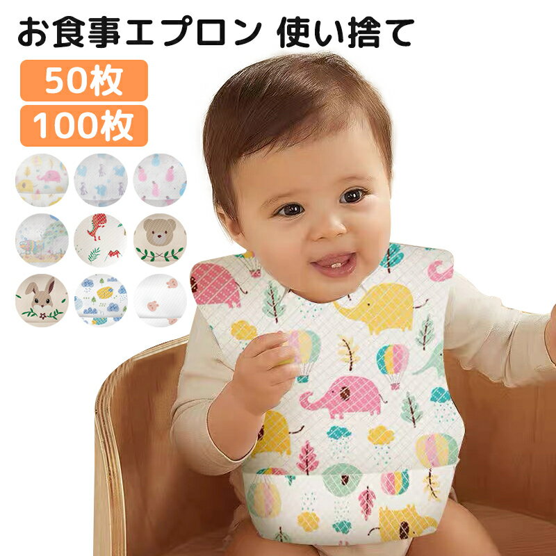 50枚入/100枚入 ランダム 使い捨てエプロン 赤ちゃん 女の子 男の子 お子様用 吸水 外出に便利 個包装 不織布 子供用 防水 お出かけ 離乳食 食事 外食 出産祝い 子ども用 キッズ 幼児 保育園 入園準備 柔らかい 送料無料