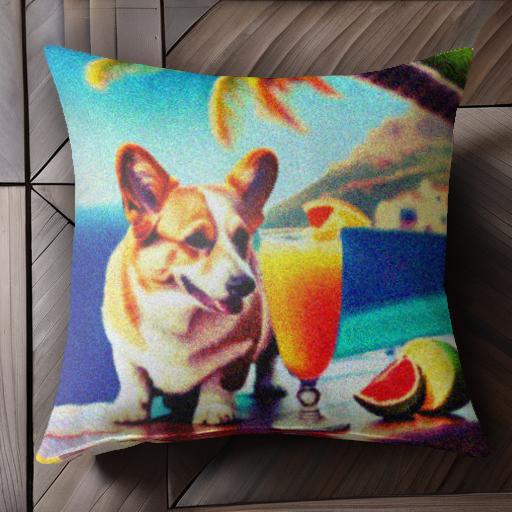 カクテル コーギー トロピカル 海 リゾート クッションカバー 45×45cm アニマル柄 おしゃれ 可愛い クッション本体付き 正方形 犬ファン