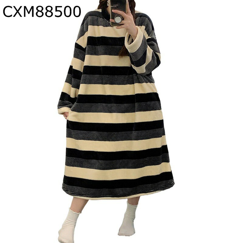 フランネル ネグリジェ パジャマ レディース 長袖 冬 ルームワンピース 家着 ボーダー ゆったり 厚手 寒さ対策 暖かい モコモコ 肌に優しい ふんわり 大きいサイズ おしゃれ お出かけ