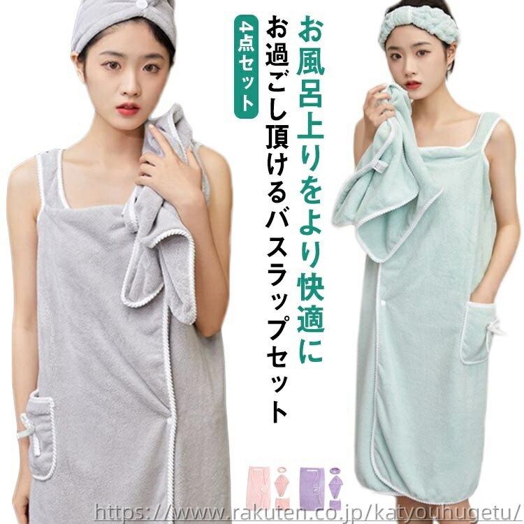 【送料無料】女の子 ふわふわ 極厚 極ふわ 吸水 軽量 マイクロファイバー 大人用 ラップタオル 4点セット かわいい レディース バスローブ