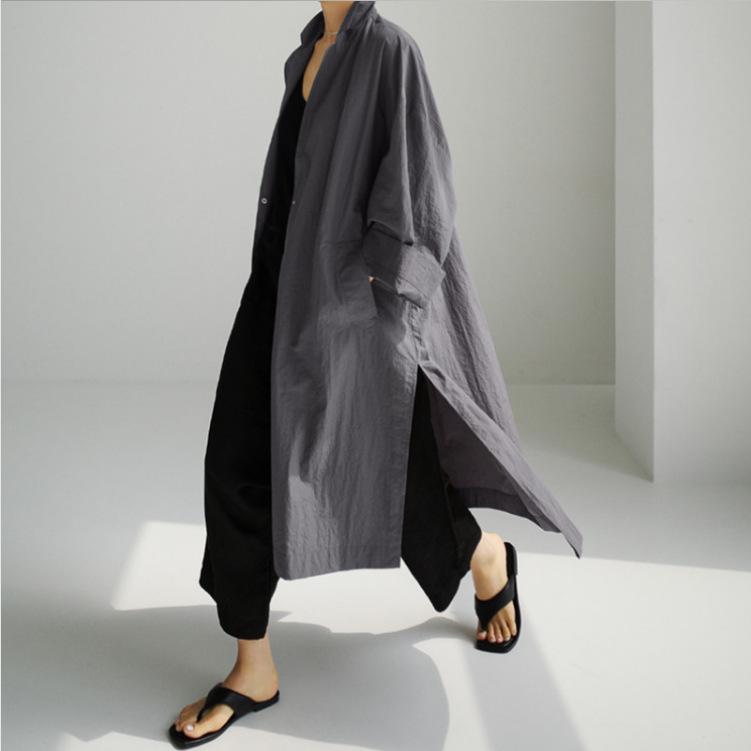 ワンピース レディース 春夏 シャツワンピース ロング丈 開襟 コットンリネン 風 コート 膝下 スリット 襟付き 長袖 ゆったり 婦人服 日韓スタイル 普段使い