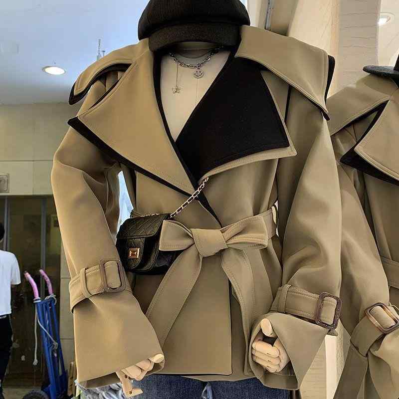 コート レディース 配色 秋冬 韓国 ポリエステル 痩せ見え スタイルアップ トレンチコート アウター