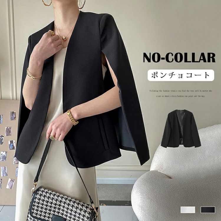 ノーカラージャケット レディース 秋 フォーマル ポンチョ コート 襟なし vネック ノーカラーコート ジャケット オフィス 通勤 O