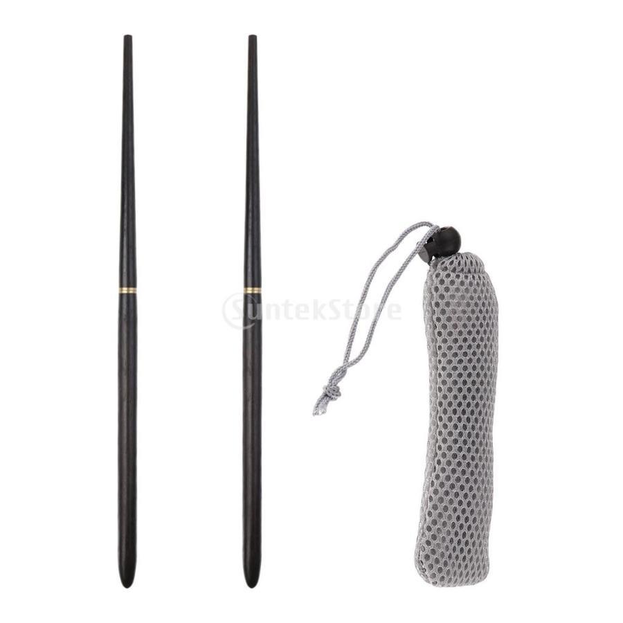 折りたたみ式 ピクニック キャンプ 旅行 木製 食器 箸 はし 収納ポーチ付 全2色 - ブラック